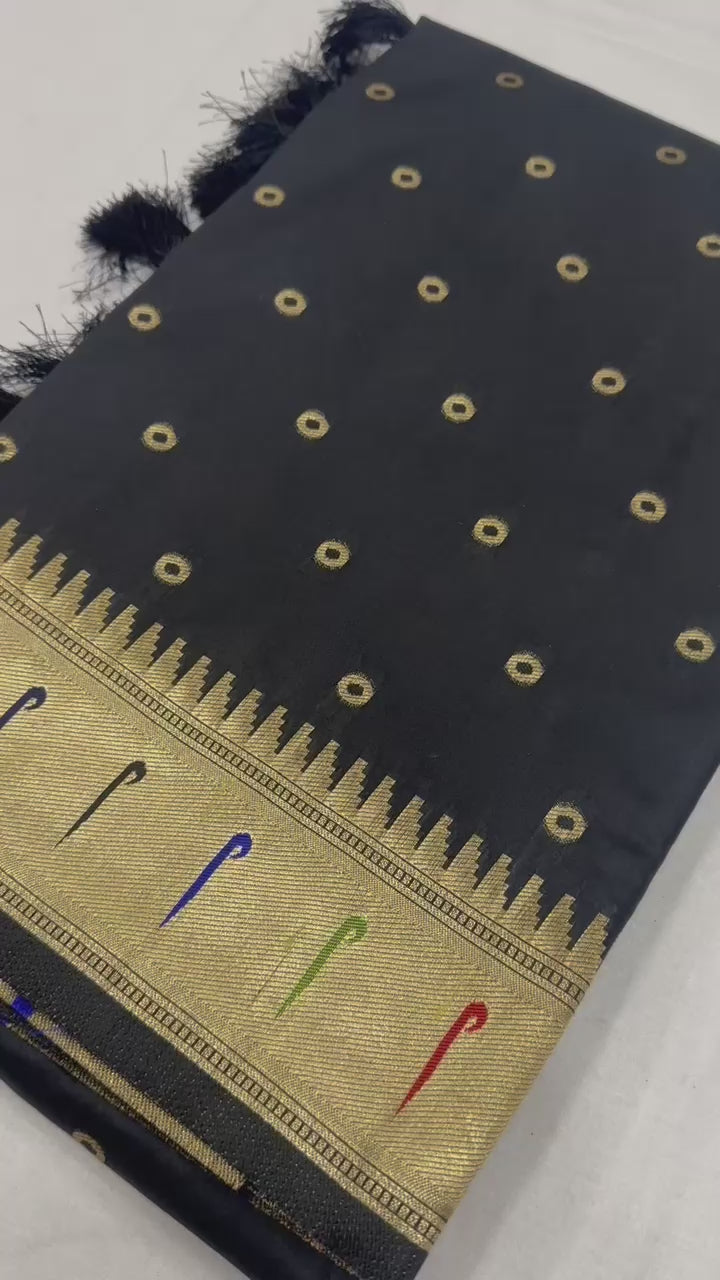 Saree :- Soft Pethani silk saree with zari weawing Meenakari design and Meenakari weawing Rich 🦚 pallu with Meenakari weawing border & Tessels attached at Pallu end.